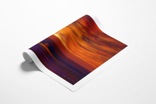 Dipinto digitale formato 50×70 cm stampato su tela, senza telaio, con firma autografa con possibilità di essere incorniciata o montata su telaio. Il dipinto è realizzato con penna grafica e tablet, stampato al plotter con inchiostri ad acqua indelebili in esacromia con sistema HP Latex su tela sintetica canvas 350 gr grana media. Presenta un bordo bianco interno di 4 cm per permettere un eventuale montaggio su telaio. Il bordo può essere tolto con un taglierino per eventuale montaggio su cornice a giorno. L’opera inoltre è accompagnata da certificato di autenticità firmato dall’autore e viene spedita con spedizione tracciabile, avvolta in pluriball e inserita in tubo protettivo per garantirne l’integrità. Essendo stampata su tela non presenta problemi di rinvenimento delle fibre quando estratta dal tubo. A richiesta può essere stampata in dimensioni personalizzate.